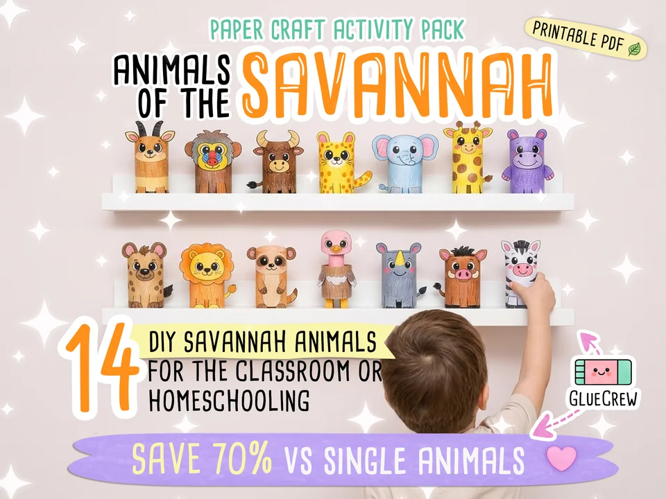 14 Hand-Drawn Paper Animals to Color, Print, Cut, and Fold.